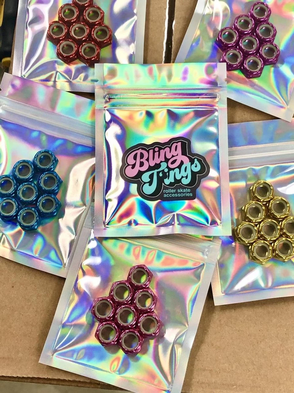 8mm Electroplated color, steel nylock axle nuts for roller skates or skateboards.