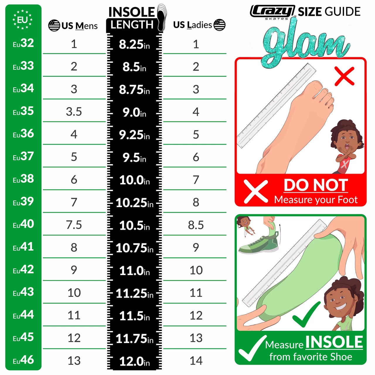 The Disco Glam by Crazy Skates is a glamorous pair of glitter roller skates that were designed to make a statement anywhere they roll, either on the street or in the rink. With their striking two-tone glitter boots, which are padded and supportive, along with their solid urethane wheels and ABEC 7 bearings, these skates will move as good as they look! The Glam’s high quality build and style make them perfect for skating at the rink, the boardwalk, and anywhere in-between. Drop this glitter bomb into your life today!