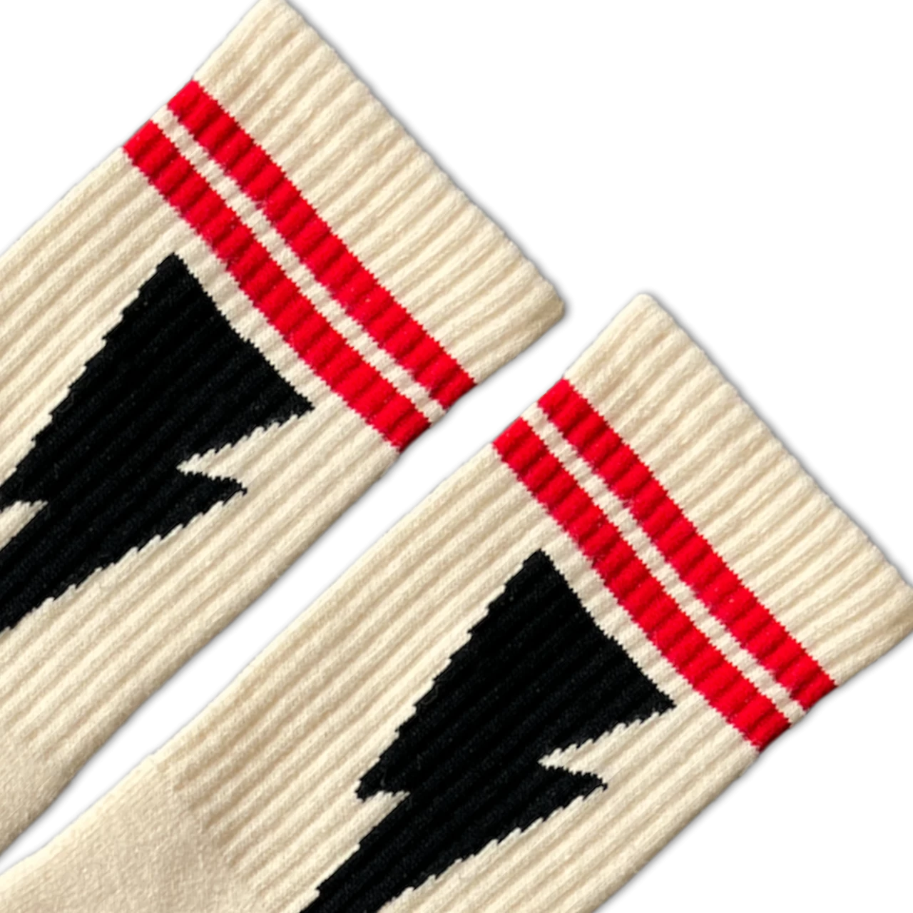 If you’re thinking the body of the sock looks little different, you’re right. It isn’t the crisp optically white sock you’re used to. Mike was fully on board with exploring an organic sock and the result is a more vintage look that stands out from the crowd.