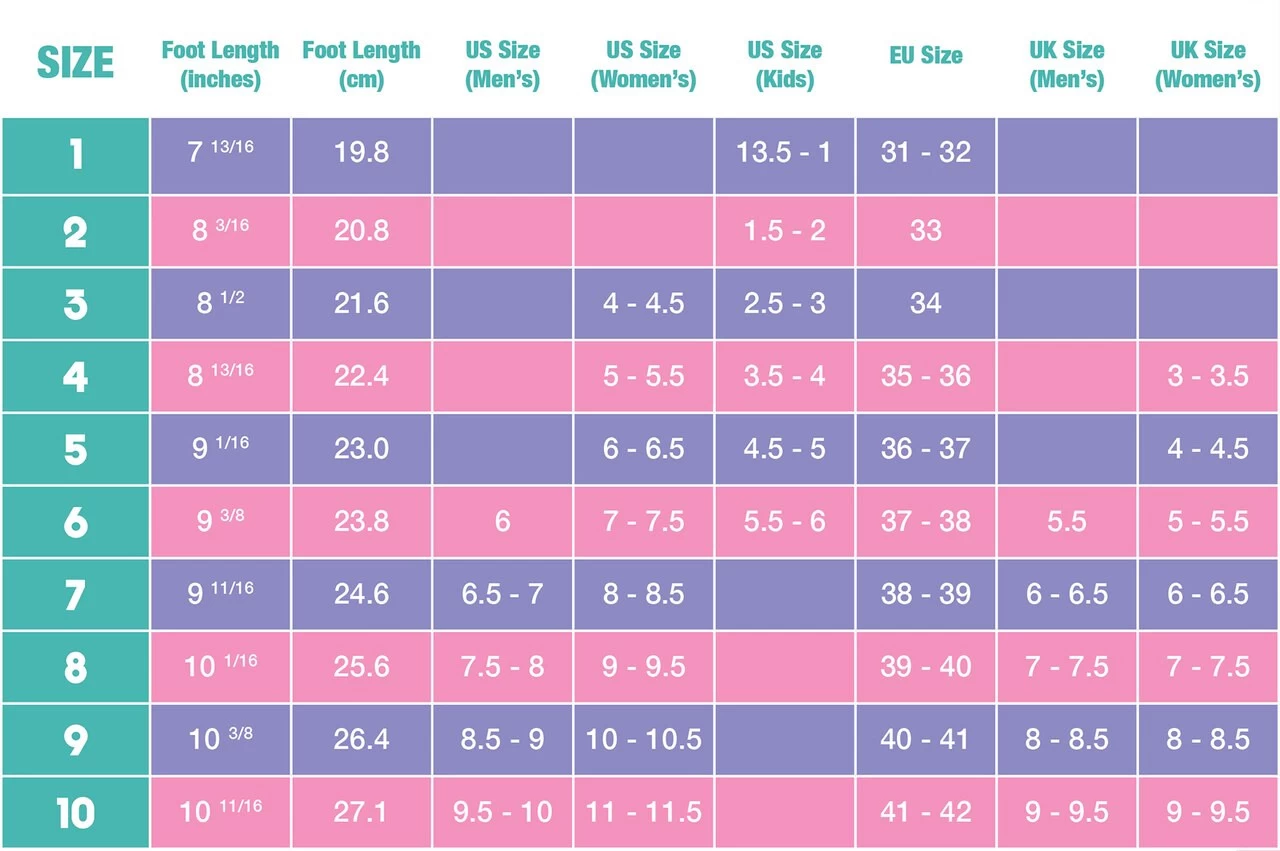 NOTE!! Please round 1 to 1.5 sizes down from your US women’s shoe size for your skate size. For more information, reference the sizing chart above.
