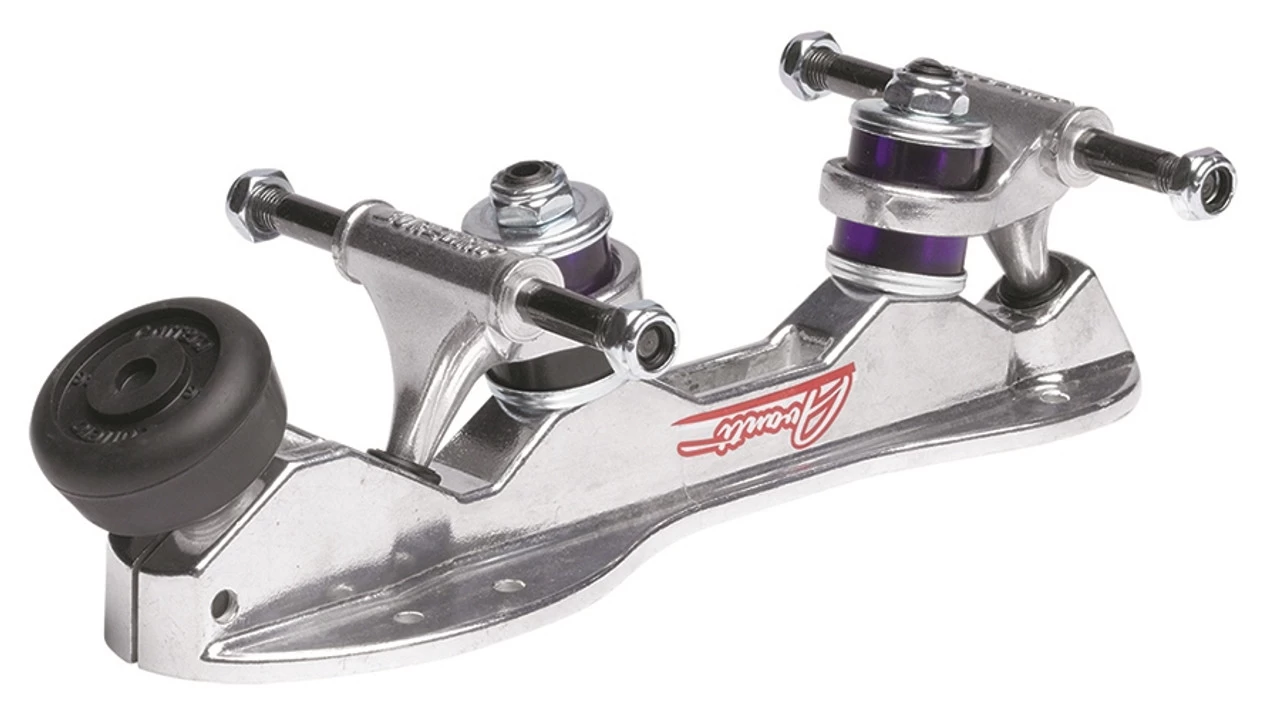 The Avanti Aluminum Plate includes a standard fixed pivot double action truck, both polished aluminum.
