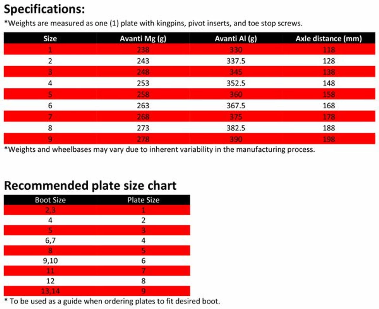 The Avanti Aluminum Plate includes a standard fixed pivot double action truck, both polished aluminum.