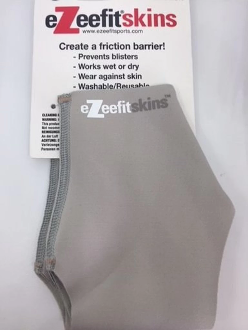 Our newest ankle bootie EzeefitskinsTMÂ is marginally thicker (.087mm) than our Ultrathin material, but is considerably softer and has much more stretch. It also has a microfiber interior (logo goes on the outside) which feels like silk against your skin. The new Skins material also provides a bit more padding than our current Ultrathin material, yet takes up no more room. The light gray color disappears under a sock.